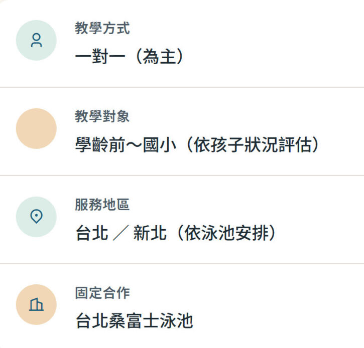 從不敢下水 → 願意把臉放進水 → 能自己漂浮