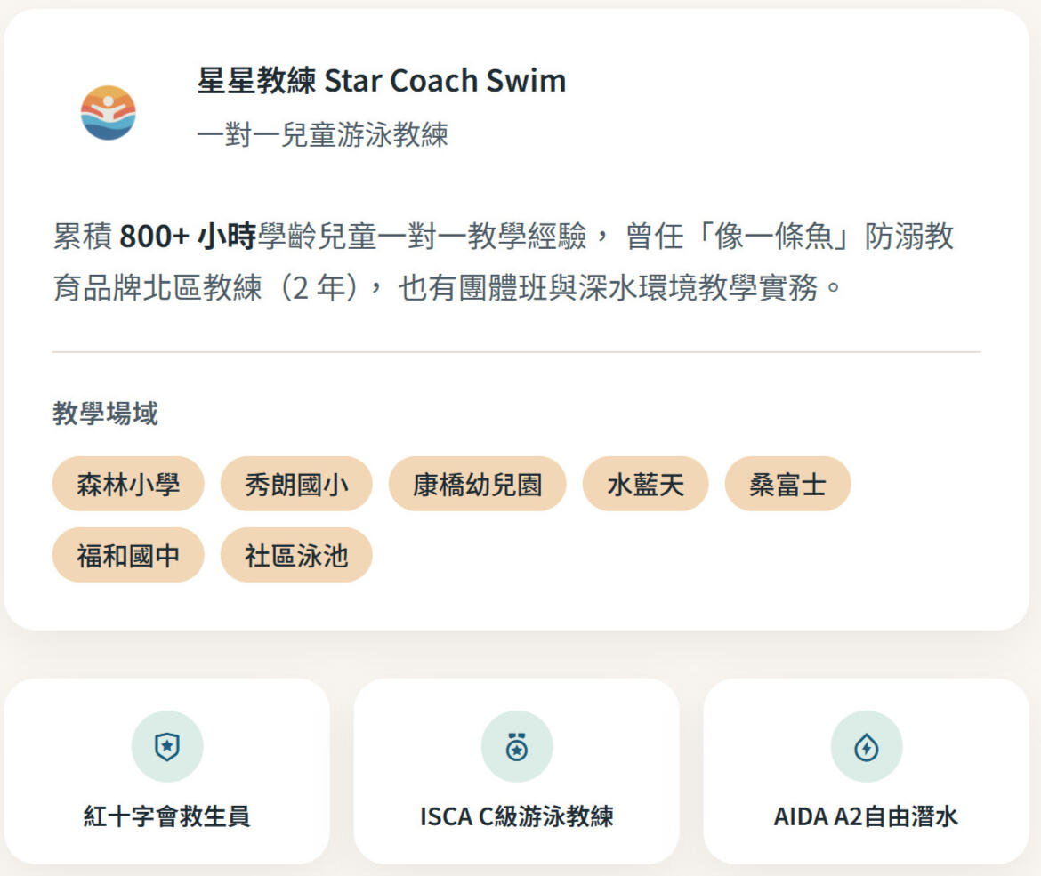 星星教練|一對一兒童游泳